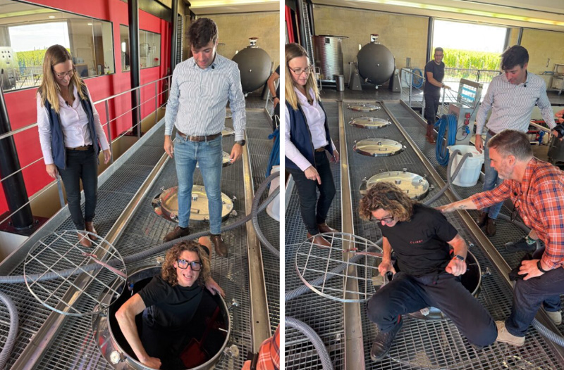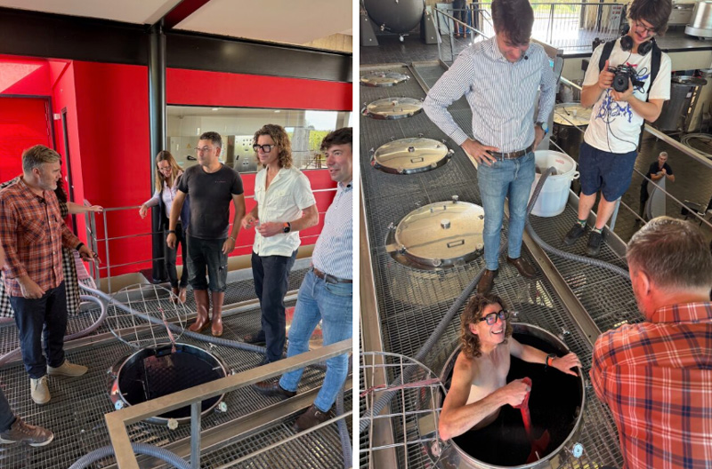 Tom enjoyed the winemaking part, while Gary graciously posed with members of staff.