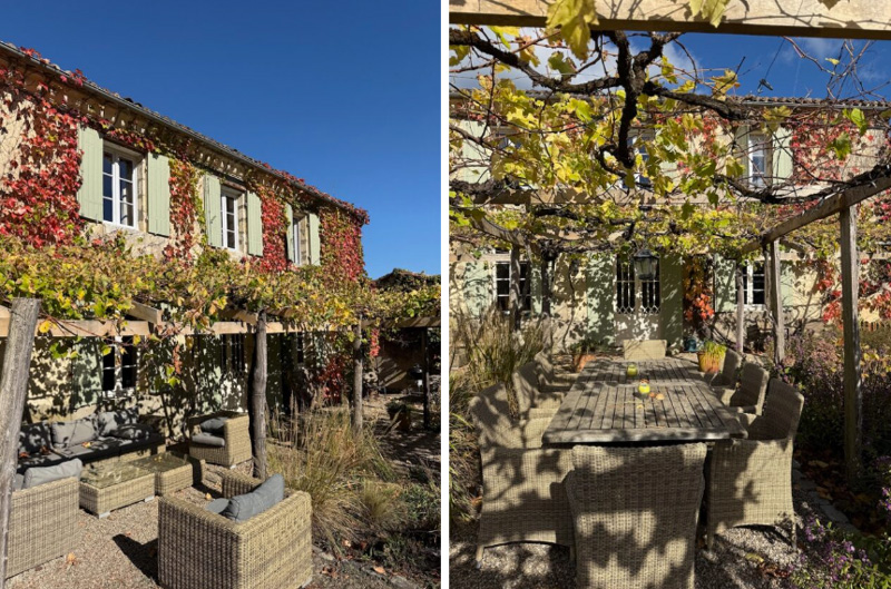 The last guests for 2025 have just left the farmhouse so lunch under the trellis today, before all the leaves drop off the vines overhead.