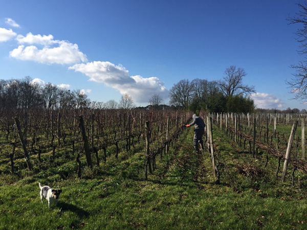 There are just the young plantations to prune now, which is no small task with 16,500 backbreakingly low vines across 3 hectares (7.5 acres). We prune the young vines relatively late - lifting the protective pouches as we go - because they can bud early, and we don't want them rushing out of the blocks when there's a risk of frost. These Cabernet Franc vines, along with a hectare each of Cabernet Sauvignon and Merlot, all planted in 2015, will produce their first small crop this year.