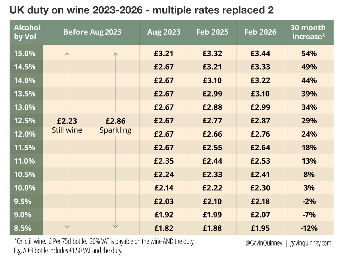 This, then, is an email for members of the trade and a few others outside the UK. For your info, the dreaded duty rises from 2023 onwards are shown below, along with some fascinating blurb on a few of our wines.